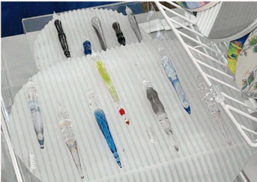 一点ものの手作りガラスペン、ガラスアクセサリー、中紙を選んでその場で製本するノート