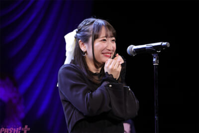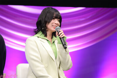 高尾さん演じる愛々から選ばれたのは「世界一“前が見えない”セリフ」。第22話の初登場シーンで愛々の代表的なセリフともいえる「でも前髪がーーッ!!」を披露し、会場からは笑いと拍手が湧き起こった。さらに「(アフレコ時の)ディレクションで、前髪があって心が安定しているときのセリフと、前髪がなくて心が不安定になっているときのセリフを使い分けてくださいと言われた」とキャラクターの繊細な表現についての裏話を明かした。
