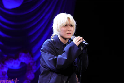 最後に加藤さんは「本日はご来場ありがとうございました」と感謝の言葉を述べた上で、「今日のイベントは僕たちキャストだけではなく、多くの方のお力添えで実現しました。ステージ上の装飾ひとつひとつも本当にありがとうございます」と関係者への感謝を口にする。そして、「なにより、皆さんの歓声が本当に嬉しくてたまらなかったです。僕は他作品も含めあまりステージに立つ機会がないので、こうやって直接(お客さんからの)声をいただくと高まるものがありました」と続け、「先ほどの発表の歓声を聞いたとき、こんなに幸せなことがあるんだなと、胸に迫るものがありました」と語った。最後には「数カ月前からこの日を楽しみにしていたので、終わってしまうのが寂しいです。なので、早くこの場で意識を失いたいなと思います」と冗談めかして締め、会場を和ませた。
