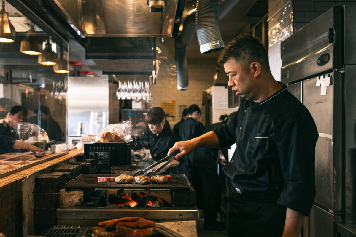 ハンバーグには黒毛和牛のミンチとスペイン産の脂身の甘い「栗豚」を独自配合し、無駄な味付けはせず、塩コショウのみで素材の旨味を引き出しています。