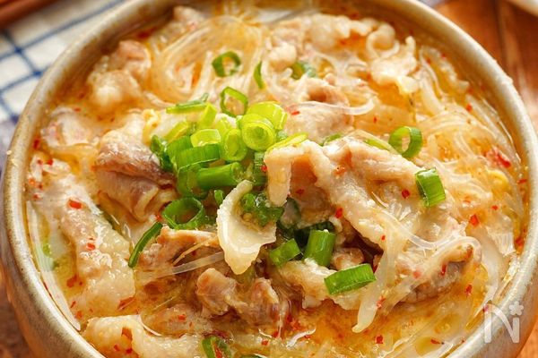 こっくり濃厚なのに、春雨を使うことで低カロリーに抑えられて、とってもヘルシー。。豚肉のうま味と、にんにくやしょうがの香りがふわっと広がるスープは、鶏がらスープをベースにごま油の香ばしさ、味噌と豆乳のまろやかさを合わせた深い味わい。