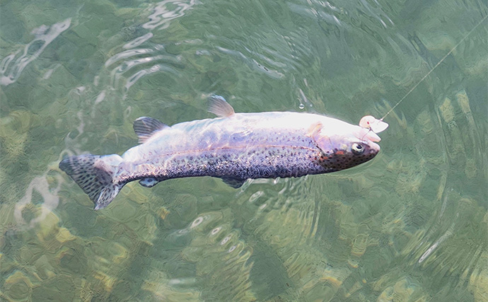 水質はかなりクリアで、足元から沖までマスがたくさん泳いでいるのが一目でわかるほど。視覚的にもテンションが上がる状況で、開始前からワクワクが止まりませんでした。