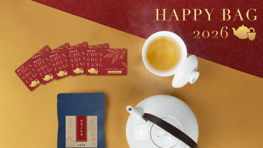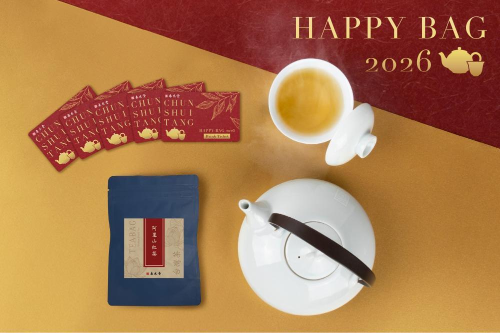 【春水堂】「新春お茶初め福袋 2026」予約受付中。ドリンクチケット5枚と選べる茶葉ティーバッグが入ってるよ。