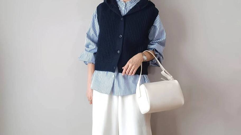 バッグに濃色を選ぶときは、ほかのアイテムで白を効果的に使うと◎