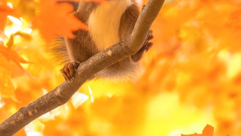 【実際の画像】「可愛すぎる!」“紅葉狩り”をするエゾリスの姿(他全2枚)