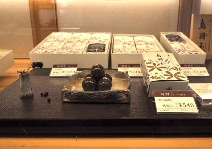 黒くつややかで、まんまる。けしの実でお化粧したこちらは、創業以来220年以上作り続けられている「烏羽玉(うばたま)」(6個入540円)です。