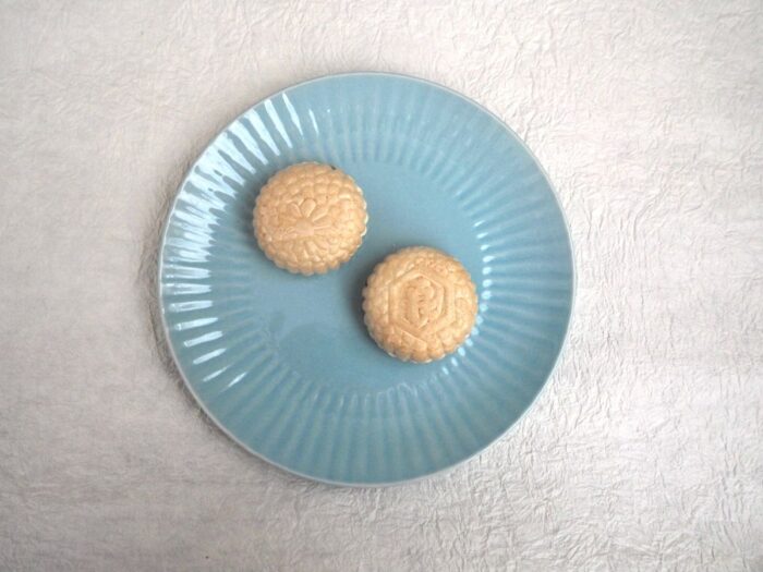 今回ご紹介するのは、京都のテキスタイルブランド「SOU・SOU」の人気柄「菊づくし」がモチーフとなった「菊もなか」です。菊の花をかたどった “かいらしい” 姿や味わいは、手に取るたびに心が和みます。