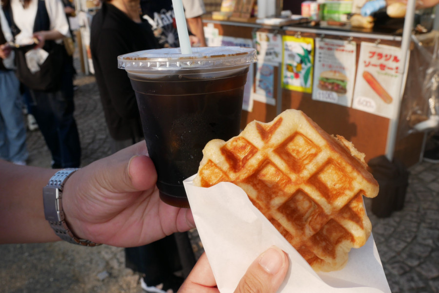 こちらは「本場のベルギーワッフル」のノボリが目を引くお店。ワッフルの種類が豊富で、出来立てを提供してくれます。