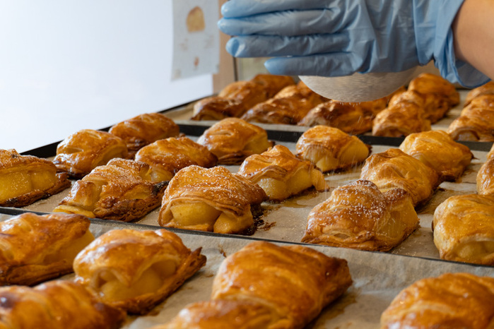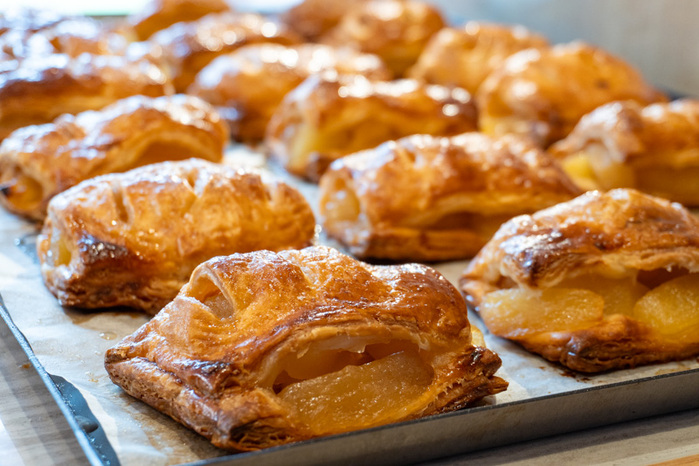 自家製の生地にはフランス産発酵バターを使用し、256層に折り重ねることで、サクッホロッ食感に。