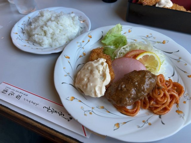 エビフライは衣しっかりめでタルタルソースたっぷり。サラダにも転用できそうなほど(笑)マヨラーとしてはうれしい量でしたが。ご飯と共にモリモリ食べてあっという間に完食。看板娘のおばあちゃんサーヴィス付きの、ほっこりとした洋食ランチでした。