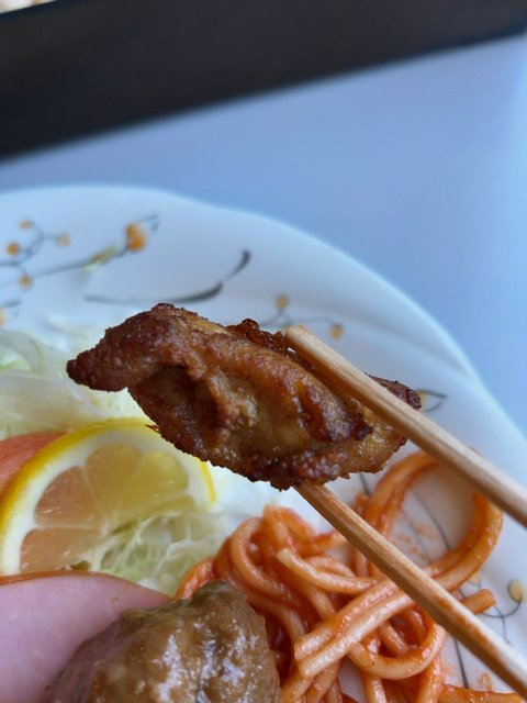 ジャンボ弁当に入っていた唐揚げ。わりとしっかりめに揚げた、衣薄めのヘルシー感。