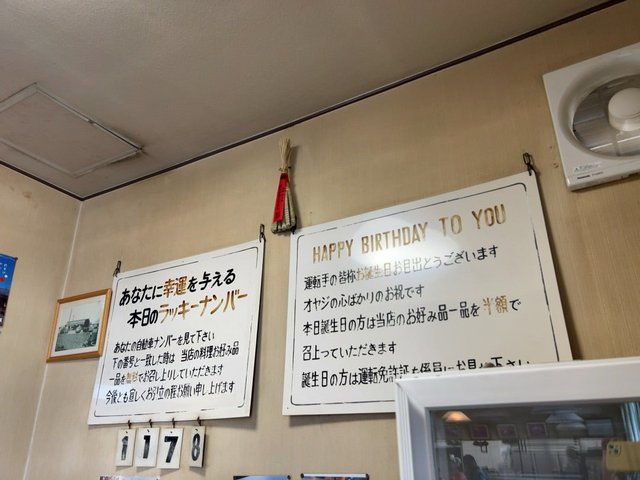 ただ、本日のラッキーナンバーと題して、これと同じ自動車ナンバーのドライバーには好きなメニューが1品無料になる、というサービス案内板は今も健在の様子(笑)