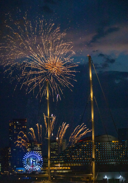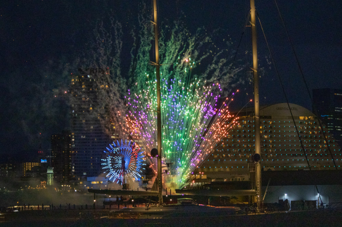 花火の打ち上げはメリケンパーク前の海上で19時30分から約5分間実施。