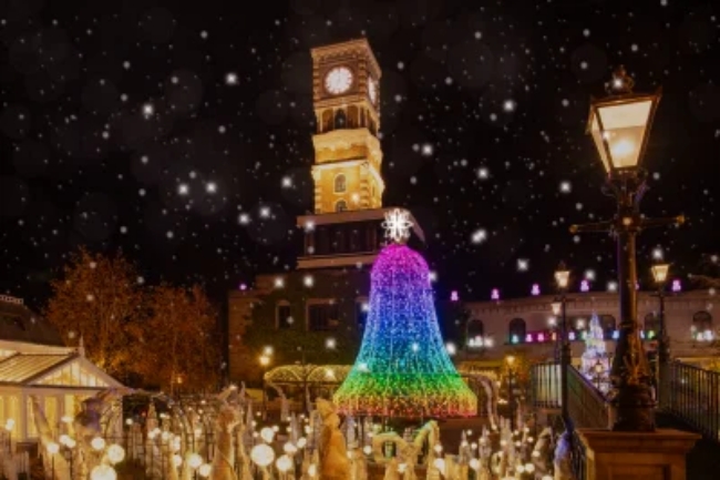 ベルや花々の光輝くイルミネーションが広がり、幻想的な世界観を体感することができます。