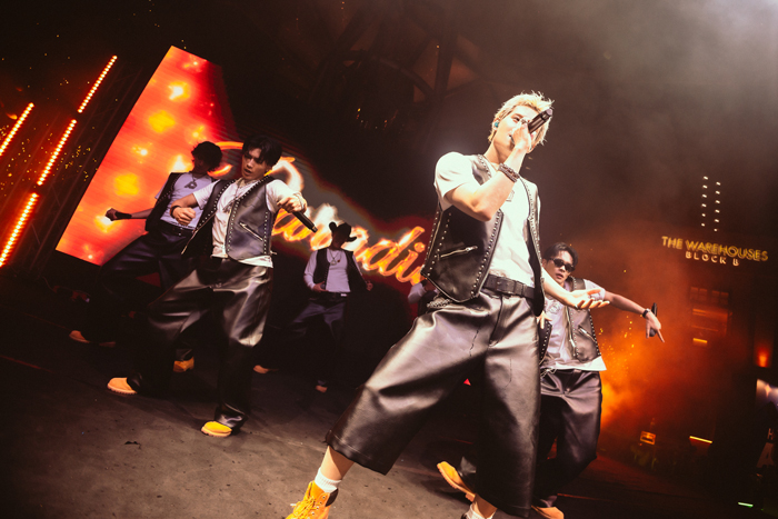 トップバッターを飾ったWOLF HOWL HARMONYは、疾走感あふれる「ROLLIN’ STONES」で鮮烈な幕開けを飾り、「What’s up Singapore!」の掛け声とともに会場の空気を一変させた。中毒性のある「Bossa Bosa」や情熱的な「LOVE RED」など、ライブを通して音楽とパフォーマンスの両面で観客を引き込み、会場は終始熱狂に包まれた。