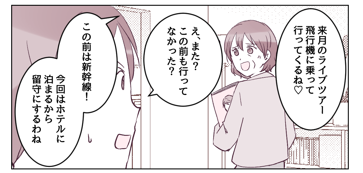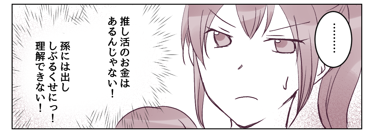 義母がくれるお祝い金はわずかだし、子どもへのプレゼントもショボいものばかり……。それでもユウジが「うちの実家は裕福じゃない」と言っていたから、仕方ないと自分に言い聞かせていました。 でも推し活をするためのお金はあるじゃない!! しかもわざわざ地方へ遠征して、新幹線や飛行機を使ってホテルに泊まって……。グッズ代やら何やらで散財して浮かれている様子にイラっとします。 孫には出ししぶるくせに、推し活にはパッと使うの? そんな義母の感覚が私には理解できなかったのでした。みなさんならこの状況、どう思われますか?