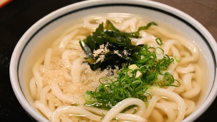 シイタケと魚介からとった優しい甘めのつゆで、ほっとやすらぐ味。