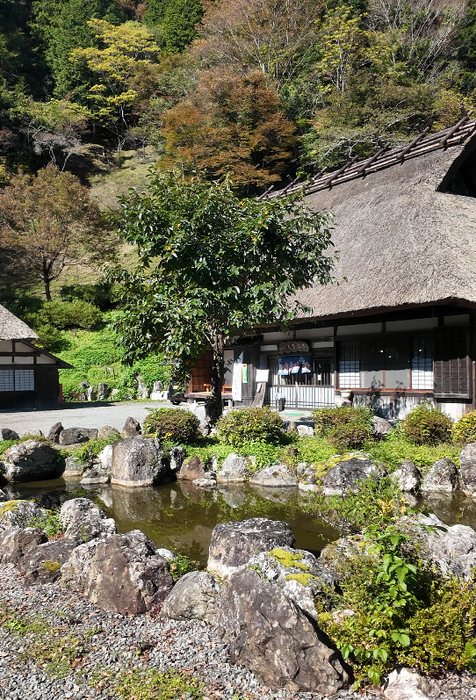 茅葺き屋根の古民家を移築した建物は、坂本龍馬が脱藩したと言われる道沿いにあります。