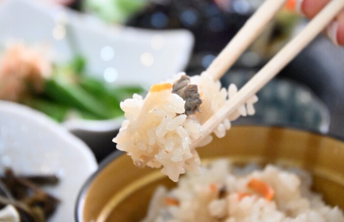 炊き込み風のご飯は、口に入れた瞬間出汁が香り、キジ肉の旨味もしっかり感じられます。