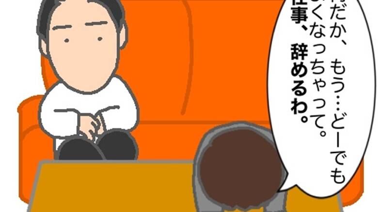 家族に相談すると言って、まる子さんは一旦仕事の話を持ち帰ってきましたが、夫が帰宅するまでに答えは出ていました。それでも、今日の出来事を聞いてもらいたいという思いから、帰宅した夫に対して、まる子さんは順を追って話しました。そして最後に「仕事、辞めるわ」と自身で出した結論を伝えたのでした。仕事を始めたときから、家庭が最優先というスタンスは変わっておらず、今の義母の状態で仕事を優先できるわけがないと、まる子さんは納得して答えを出しました。