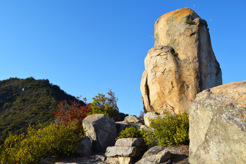 児島半島の東部に位置する「立石山」の山頂に、古代から信仰の場だったとされる謎の巨石群があります。地名から「番田の立石」、その形状から「鉾立岩」などと呼ばれています。