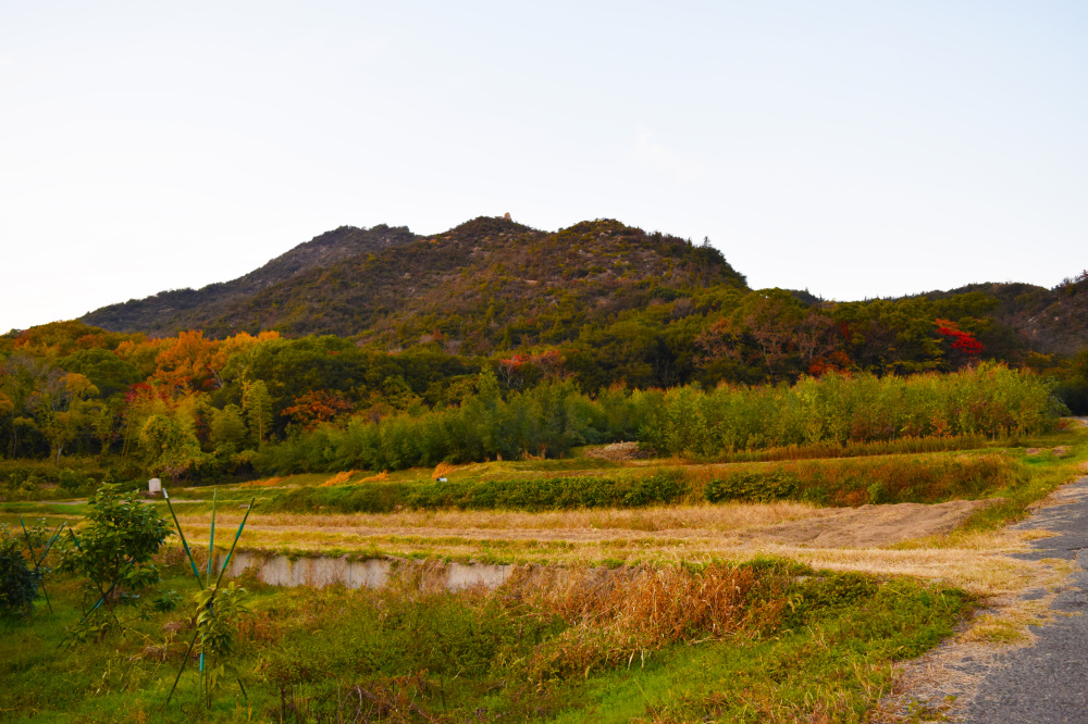 背後には、ここより標高の高い「八丈岩山」(玉野市)が続いているので、少し登って「番田の立石」の全体像を見てみましょう。