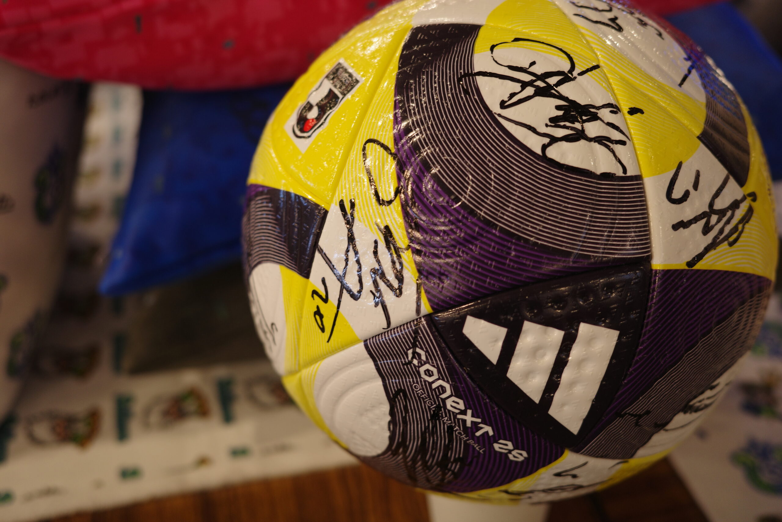お楽しみ抽選会ではベルマーレの選手たちの直筆サインが入った貴重なグッズも贈られました。憧れの選手たちのサインに子どもたちは未来の自分を重ねていたのかもしれません。