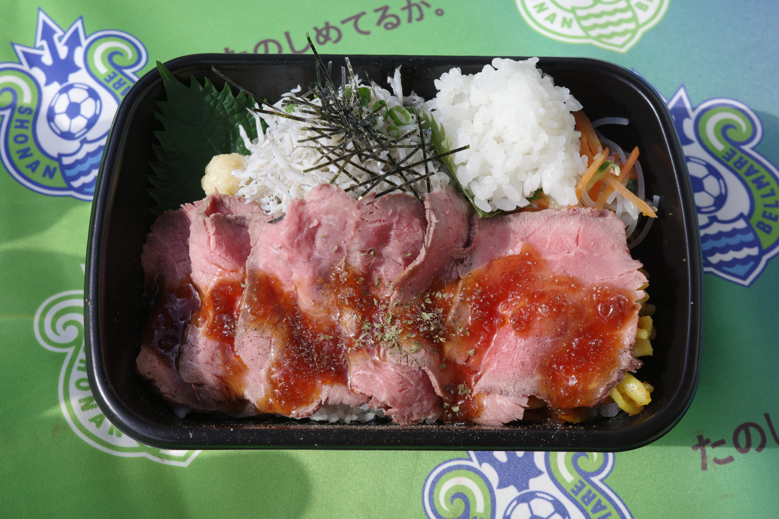 わたしもいただいた「しらすとローストビーフのランチボックス」はベルマーレフードパークアワードで5年連続No.1に輝き殿堂入りした逸品です。潮の香りがする湘南の釜揚げしらすと自家製ローストビーフはどちらもごはんとの相性抜群。粒立ちした新米の美味しさをさらに引き立ててくれました。