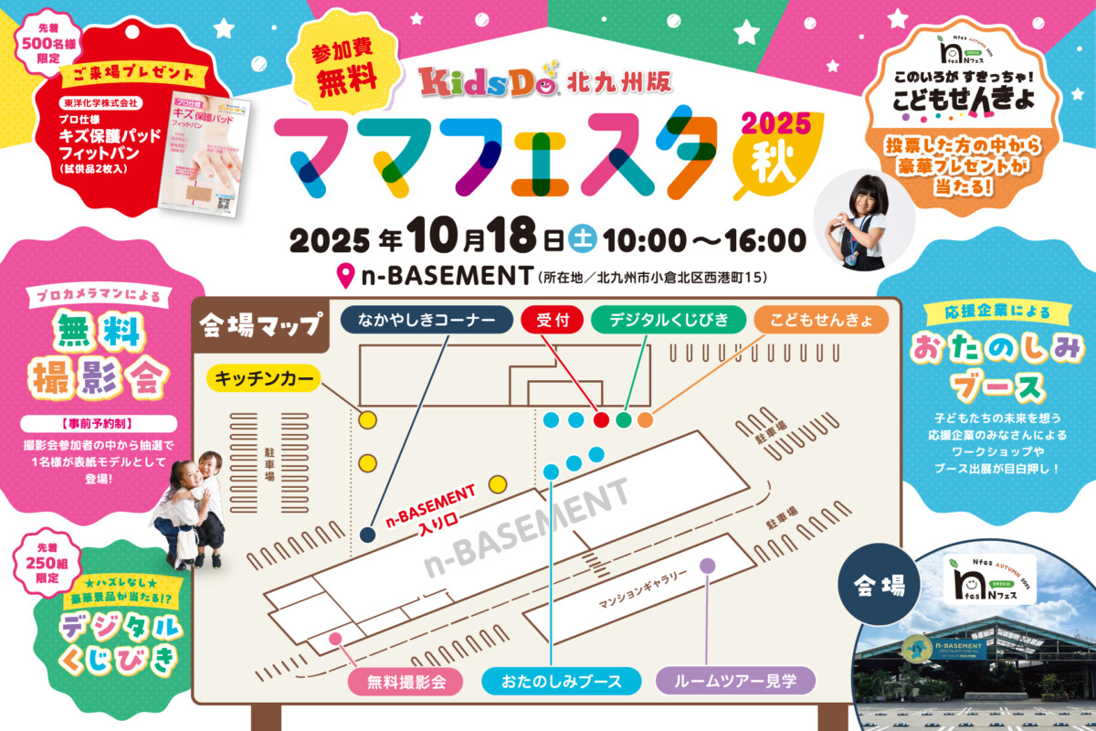 n-BASEMENTのイベント広場で10月18日、「KidsDoママフェスタ2025秋」が開催されます。時間は、午前10時〜午後4時まで。
