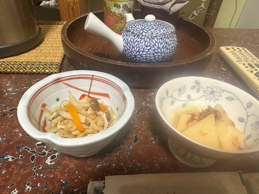 タケノコの土佐煮、切り干し大根の煮物。ともに味付けの塩梅(あんばい)がちょうどよく和食の神髄ともいえるだしが染み込んだ素材の味が生きています。身体が元気になるご飯に合う一品でした。