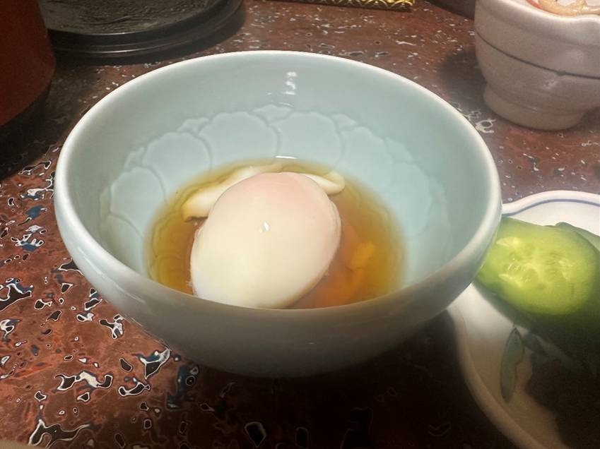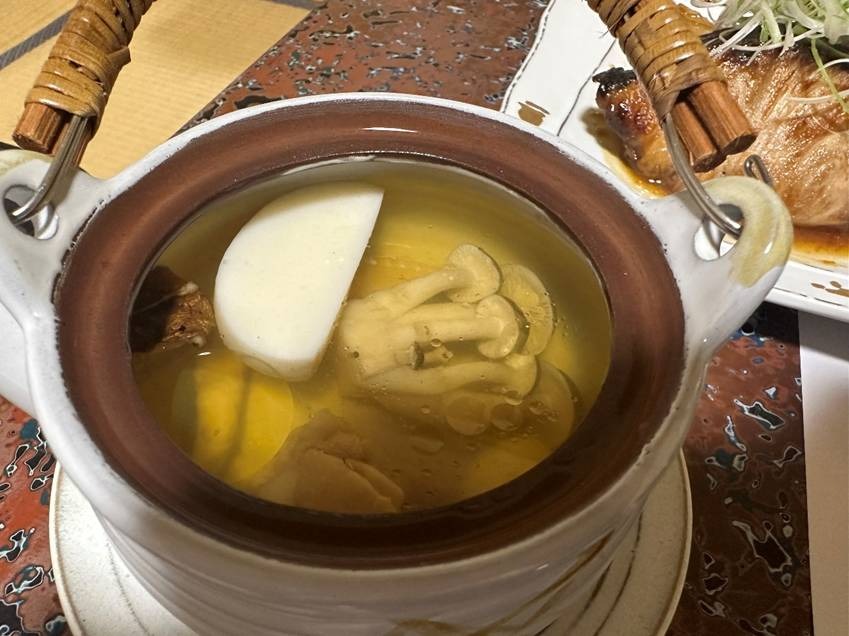 この日は土瓶蒸しを頂いたのですが、マツタケ、シメジ、鶏肉やギンナンなど旬の素材のうまみが溶け出しただしは複雑で奥深い味。とても体が温まりました。