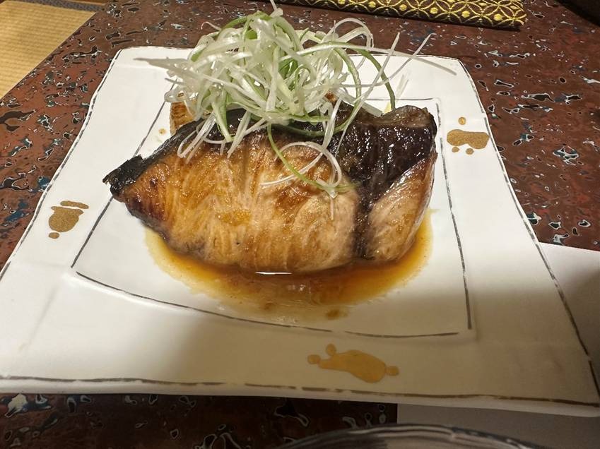 ブリと大根をショウガしょうゆだれで焼いたものです。ブリ大根はもちろんですがブリと大根の組み合わせは焼いてもばっちりです。ホクホクとしたブリの身と淡泊な大根とねぎの香味、食欲を増すショウガしょうゆだれ。お酒にもご飯にも合いそうです。