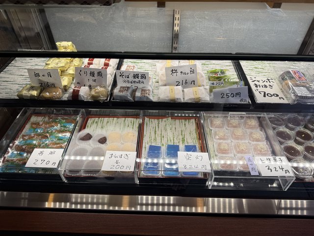 店内のショーケースには、昔ながらの饅頭やおはぎといった日常使いの和菓子から、お茶席にも合う上生菓子、さらに季節の素材を使った菓子まで幅広く並びます。価格帯は200〜400円(税込)が中心で、手に取りやすいのも魅力。