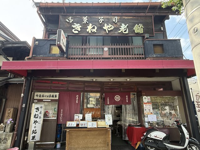 七条西大路の交差点を東へ入ったところに店を構える、和菓子司「きねや老舗」。