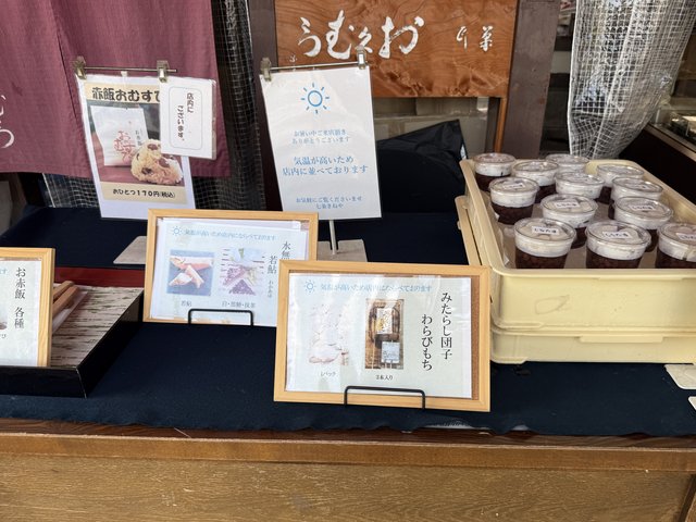 みたらし団子や赤飯、白玉などもあり、赤飯おむすびといったユニークな商品も用意されています。