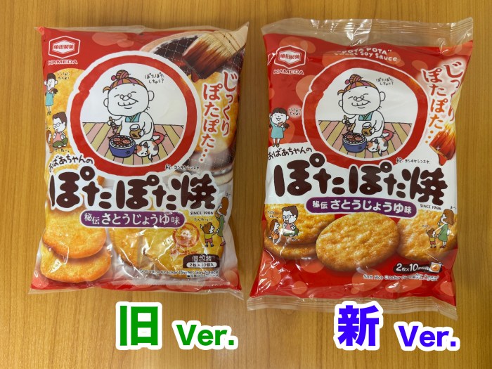 製造元の亀田製菓に問い合わせたところ、10月1日から順次新パッケージに切り替わっているらしい。ぽたぽた焼といえば2023年8月、突如おばあちゃんのイラストが変わり世間をザワつかせたことで知られる。