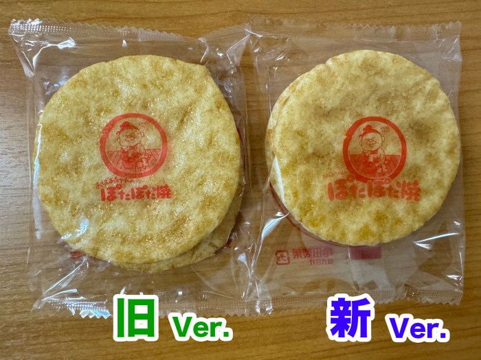 新・旧ぽたぽた焼は、小分け袋のデザインも微妙に刷新されている。