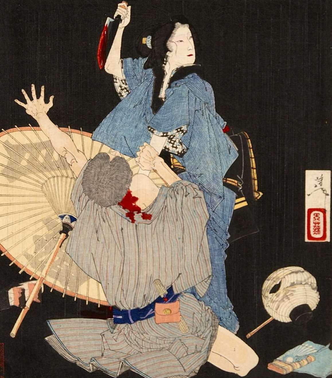 雨降りの夜、峰三郎を刺殺したお梅
