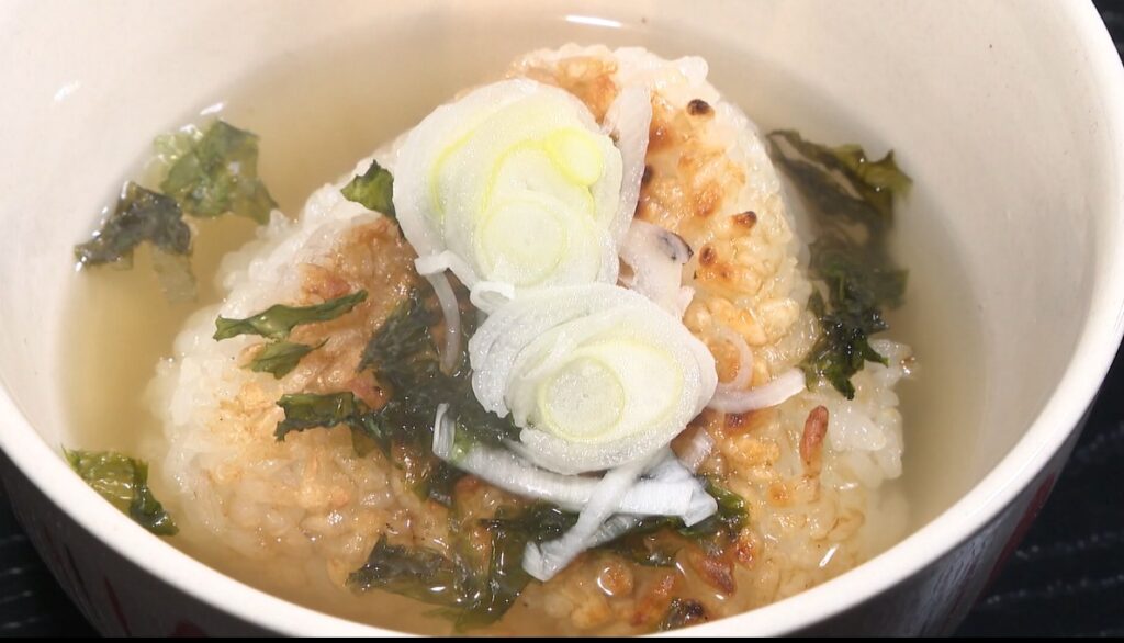 2つ目の焼きおにぎりは、出汁茶漬けで、さっぱりと。