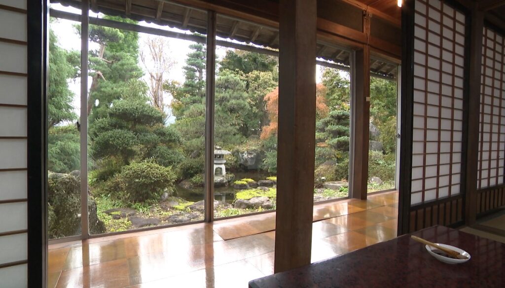 旧家の立派な庭を眺めながら、自分で焼いて食べるおにぎりと団子。特別な時間を過ごすことができます。