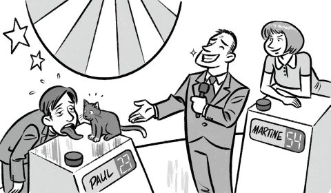donner sa langue au chat という表現は直訳すると「猫に舌を与える」ですが、実際にはどういう意味でしょうか。イラストを参考に答えを選んでください。