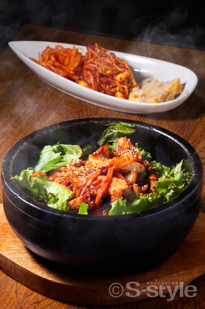 石鍋の底ではおこげができ、香ばしさとカリッとした食感も楽しめるのが魅力。ピリ辛の味わいに野菜の甘みが合わさり、最後のひと口まで満足感たっぷりの一品です。