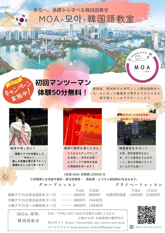 ■vol.44 みんなの夢を応援!韓国語学習、韓国留学を徹底サポート!韓国語スクール『MOA-모아-』が仙台に近日オープン!!