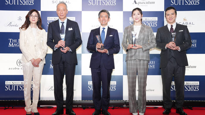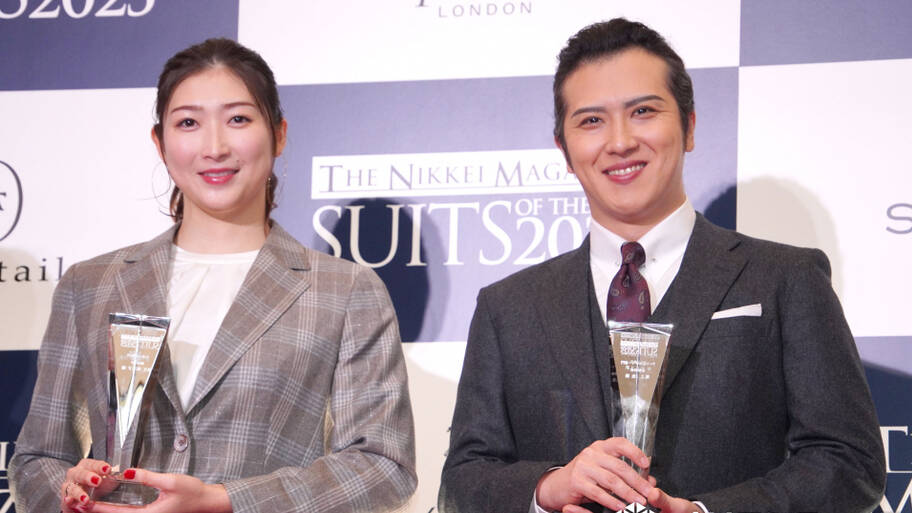 日本経済新聞社 メディアビジネス ライフスタイルサイト「THE NIKKEI MAGAZINE」が主催する「SUITS OF THE YEAR 2025」の授賞式が11月12日に東京都内で行われた。8回目を迎える今年は「サステナブル」をテーマに4部門で受賞者を選出。アート&カルチャー部門で受賞した歌舞伎俳優の尾上松也は「もっとスーツが似合う男になっていかなければならないと身の引き締まる思い」と語り、スポーツ部門で受賞した競泳選手の池江璃花子もトロフィーを片手に喜びを表現した。