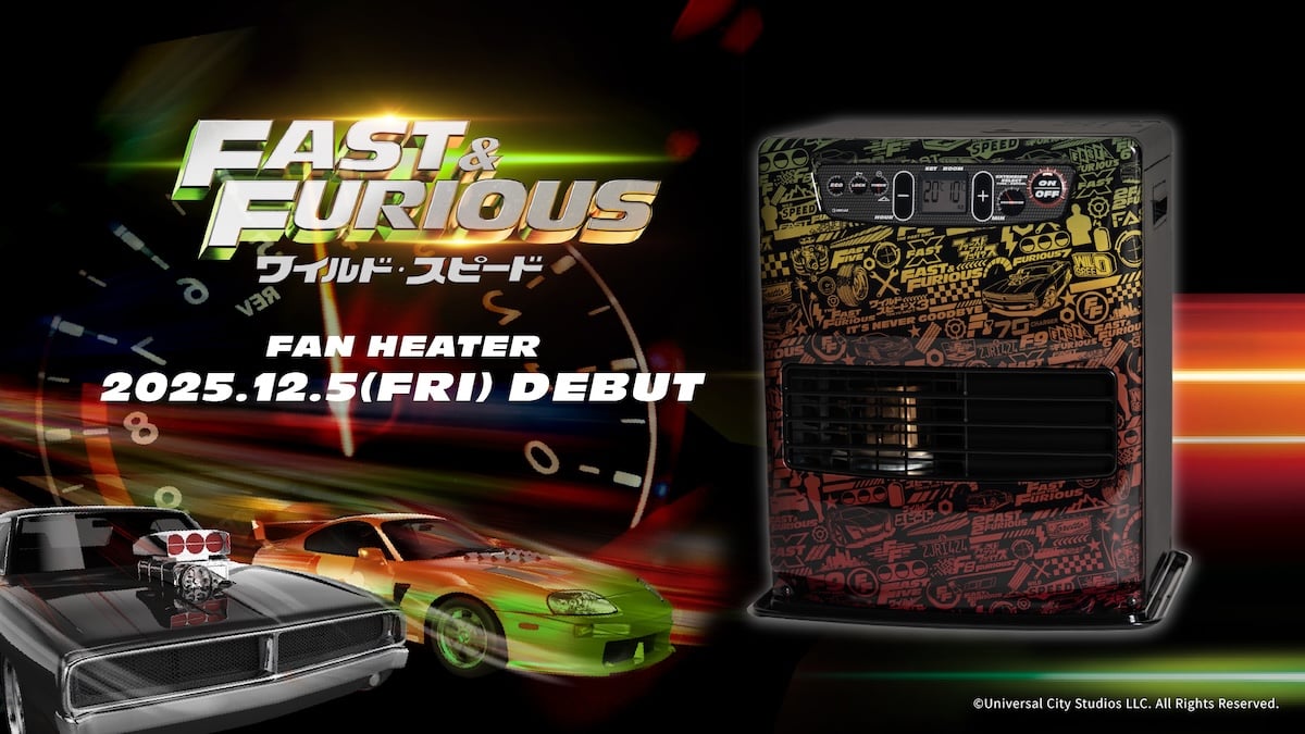 『ワイルド・スピード』特別デザインの石油ファンヒーター「LC-33FF」が2025年12月5日より販売される。2026年に第1作が公開25周年を迎えることを記念したアイテムだ。