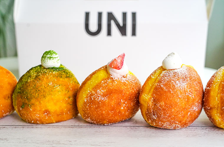 UNI DONUTSでは、プレーンをはじめとする6種類のバラエティー豊かなラインアップがそろいます。どれもふわっと軽やかな生地と、それぞれのクリームの個性が絶妙に調和しています。
