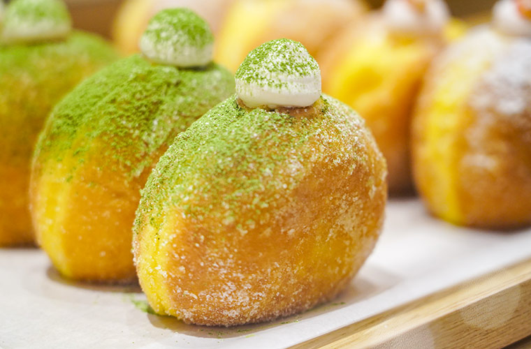 クリームに粉末とペースト両方を使った贅沢な抹茶クリームがふんわり生地を彩る、和のドーナツ。抹茶の深い香りとほろ苦さが絶妙で、上品な味わいが広がります。お茶請けにもぴったりな一品。