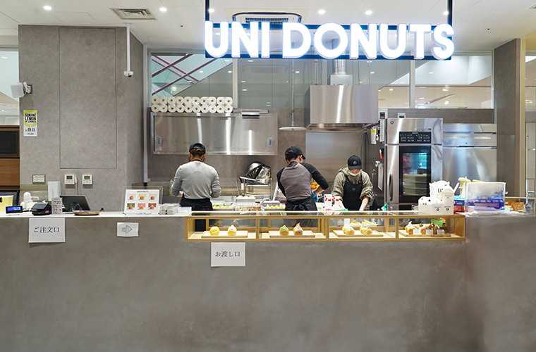 初めて訪れる人にぜひ味わってほしいのが、スタッフもイチオシの看板商品『UNIドーナツ』。ほとんどのドーナツがクリームたっぷりなのに対し、『UNIドーナツ』だけは唯一クリームなし。そのシンプルさが、素材の風味を引き立てています。