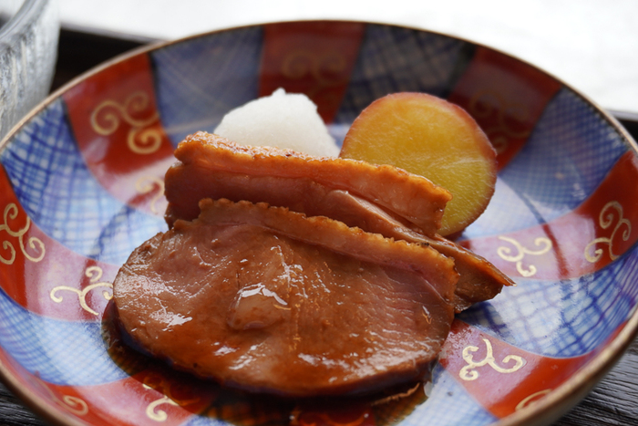 鴨ロースと五郎島金時。鴨の上質な脂とお芋の甘い余韻がよく合います。