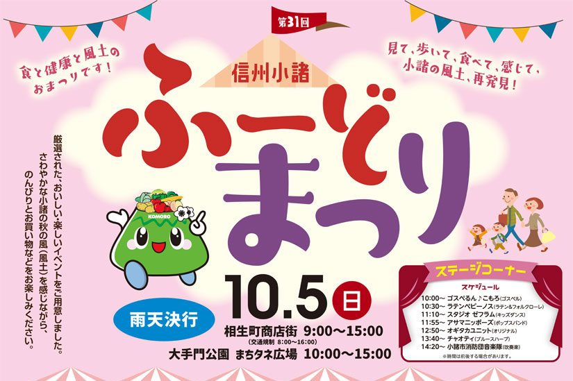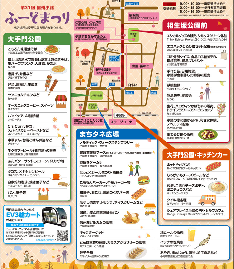 2025年10月5日(日)に長野県小諸市で、JR小諸駅前を歩行者天国とし、「相生町商店街」「大手門公園まちタネ広場」など複数の会場で『第31回 信州小諸ふーどまつり』が開催。